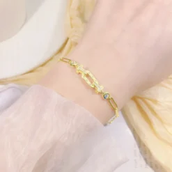Wholesale Simple Style Geometric Sterling Silver 14K Gold Plated Rhodium Plated Zircon Bracelets
