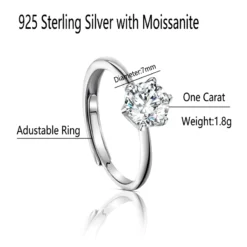 Wholesale Romantic Shiny Solid Color Sterling Silver GRA Inlay Moissanite Open Ring