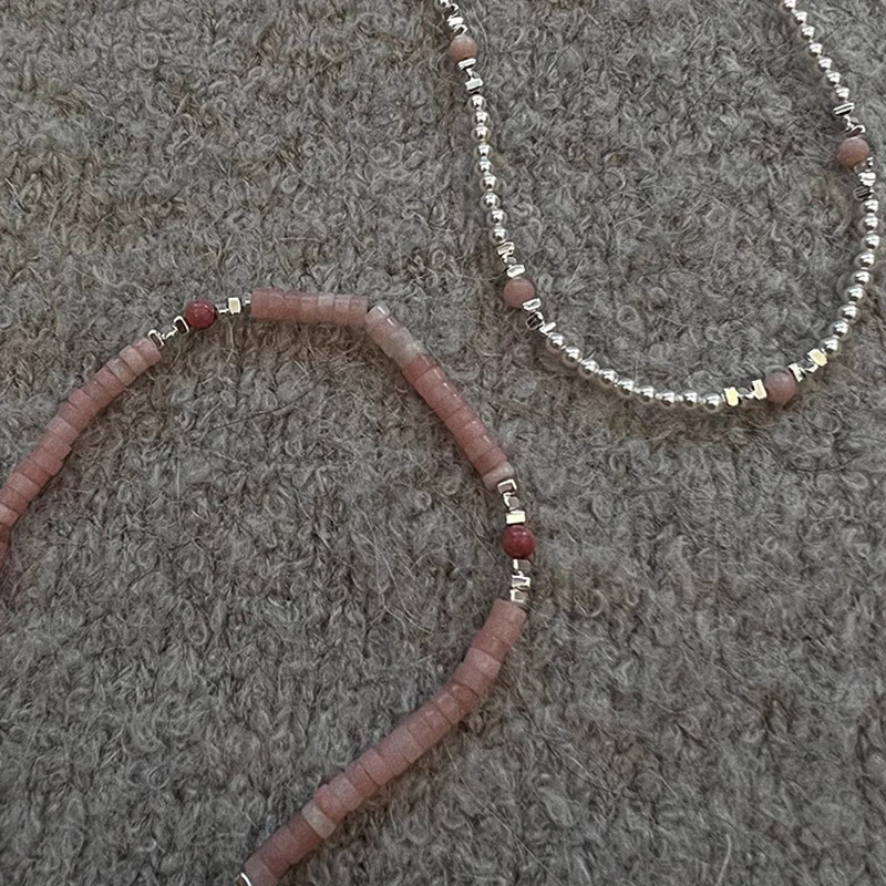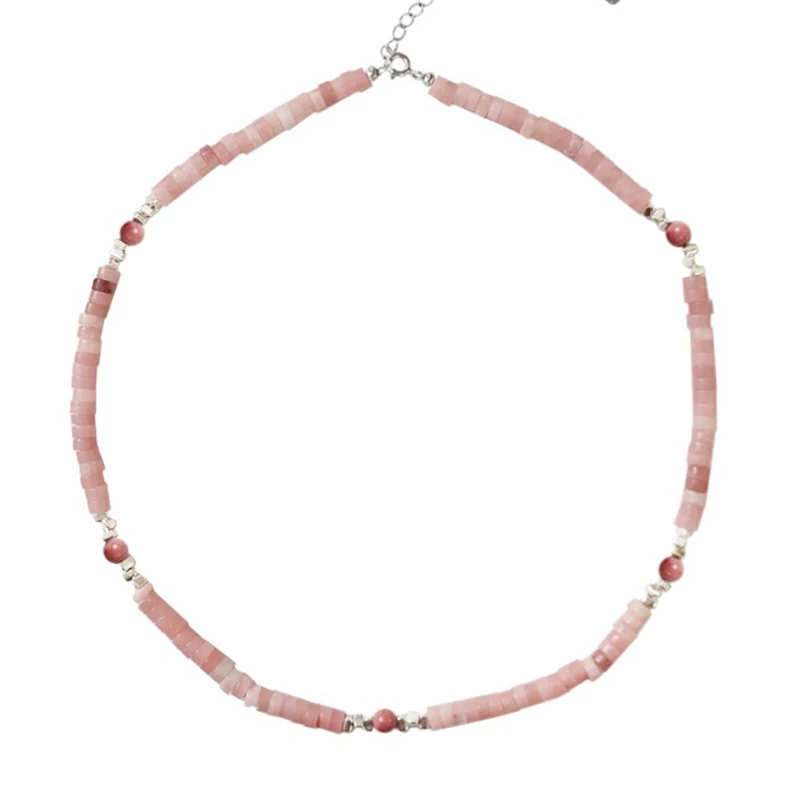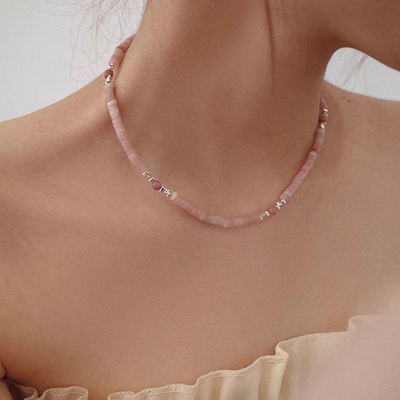 | option | Pink Natural Stone Broken Silver Necklace, 925 Silver, Pearl Broken Silver Necklace, 925 Silver |
