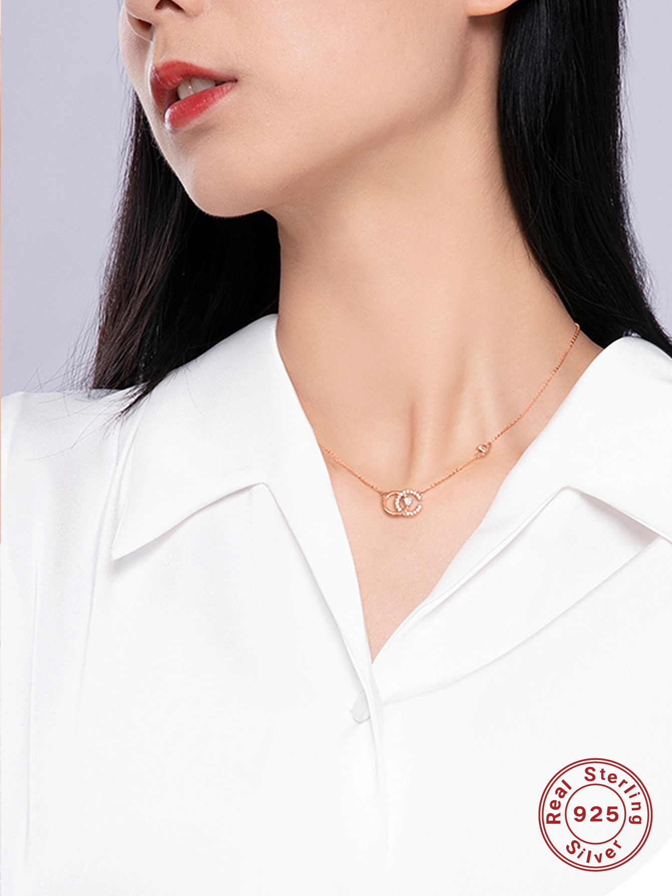 Simple Style Commute Letter Sterling Silver Rose Gold Plated White Gold Plated Zircon Pendant Necklace In Bulk