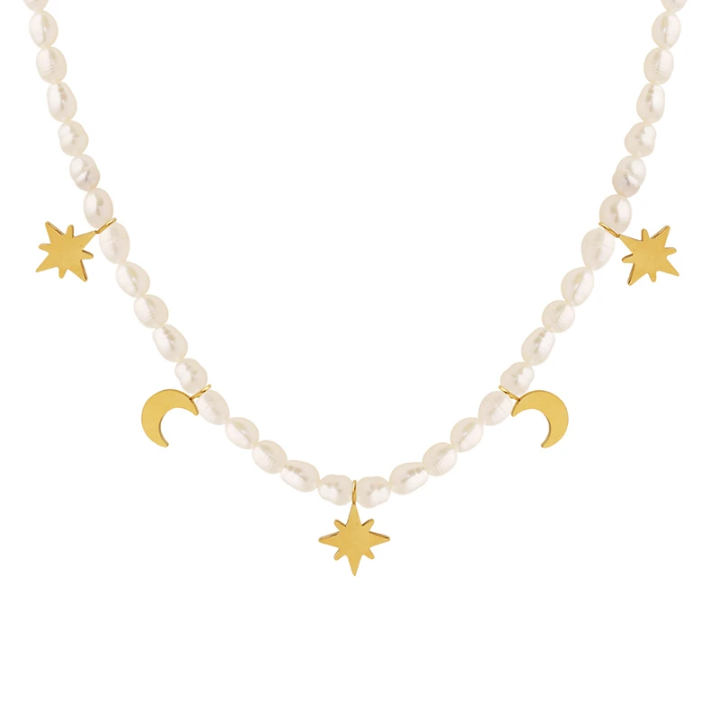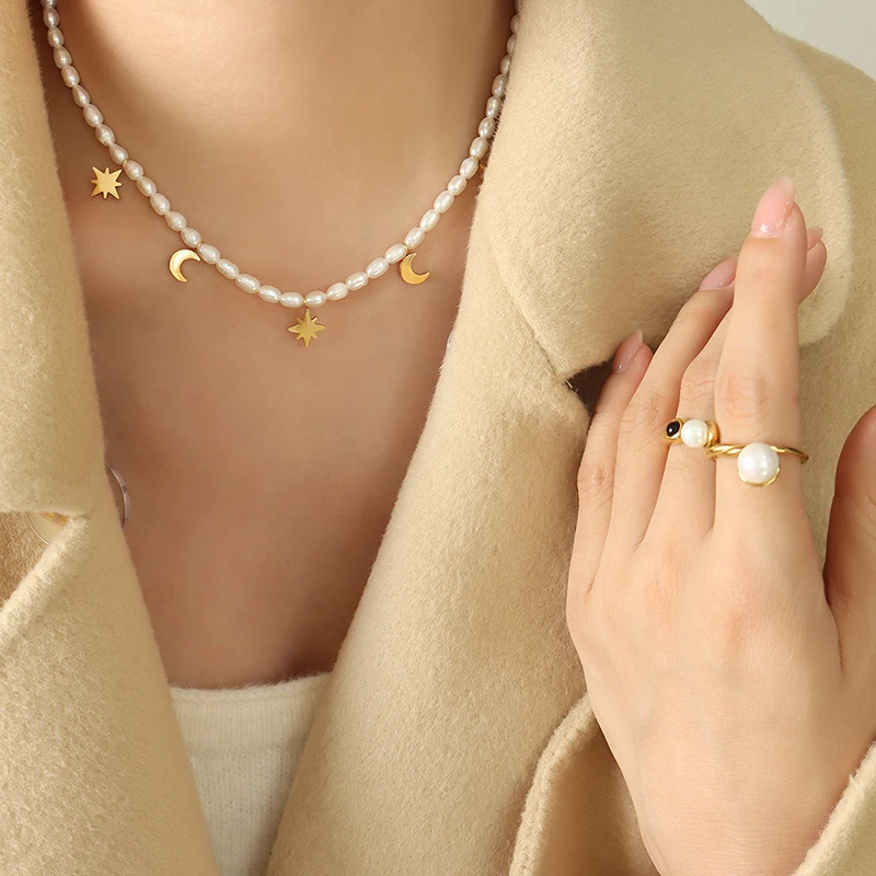 Be the first to review “Simple Style Star Moon Titanium Steel Beaded Gold Plated Artificial Pearls Choker 1 Piece” Cancel reply