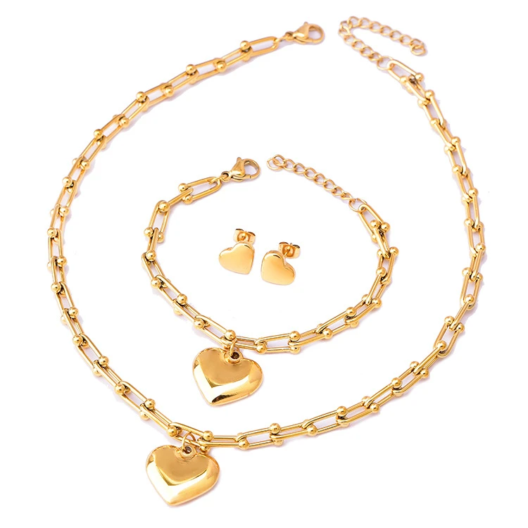 Personality Metal Heart-shaped Titanium Necklace Set Wholesale Nihaojewelry