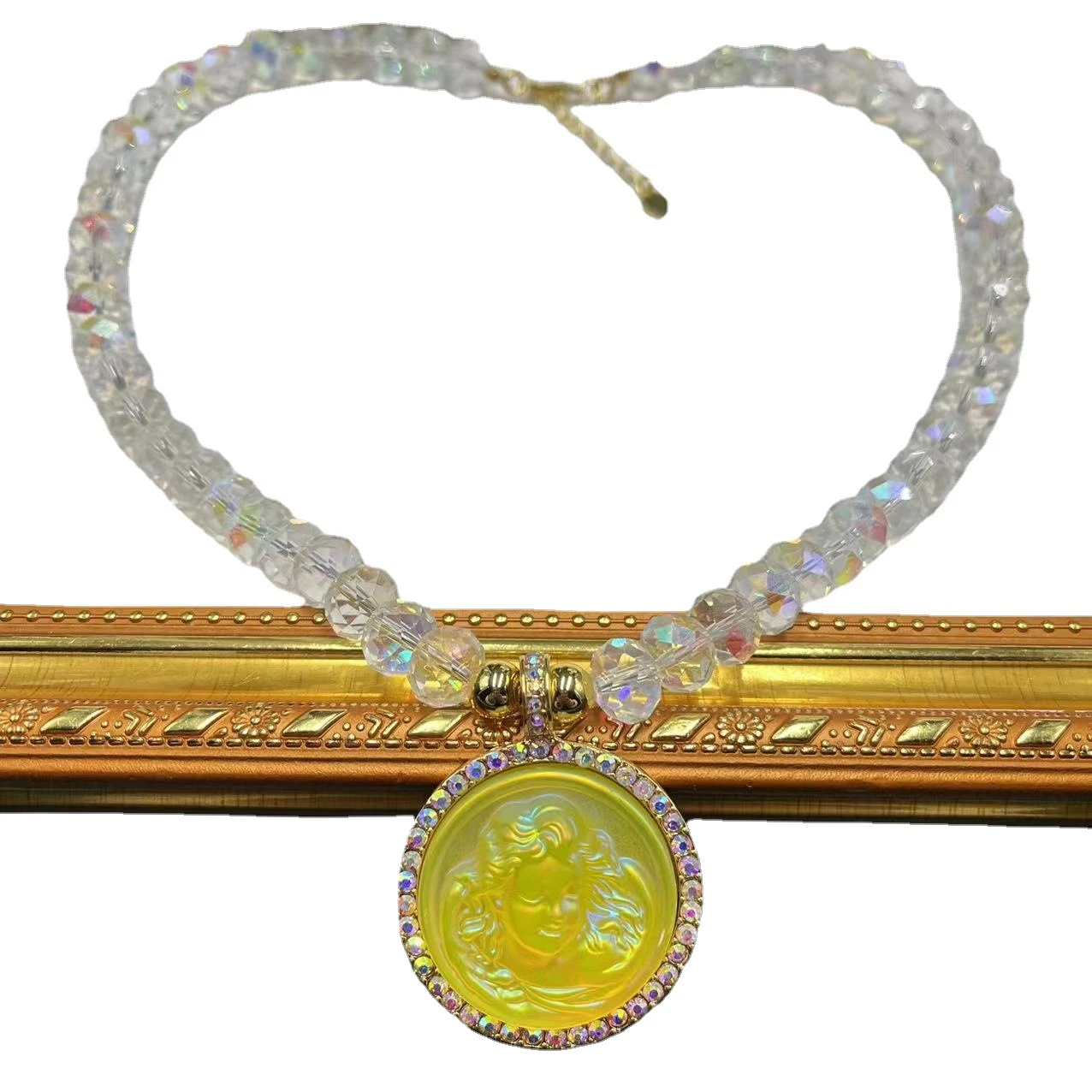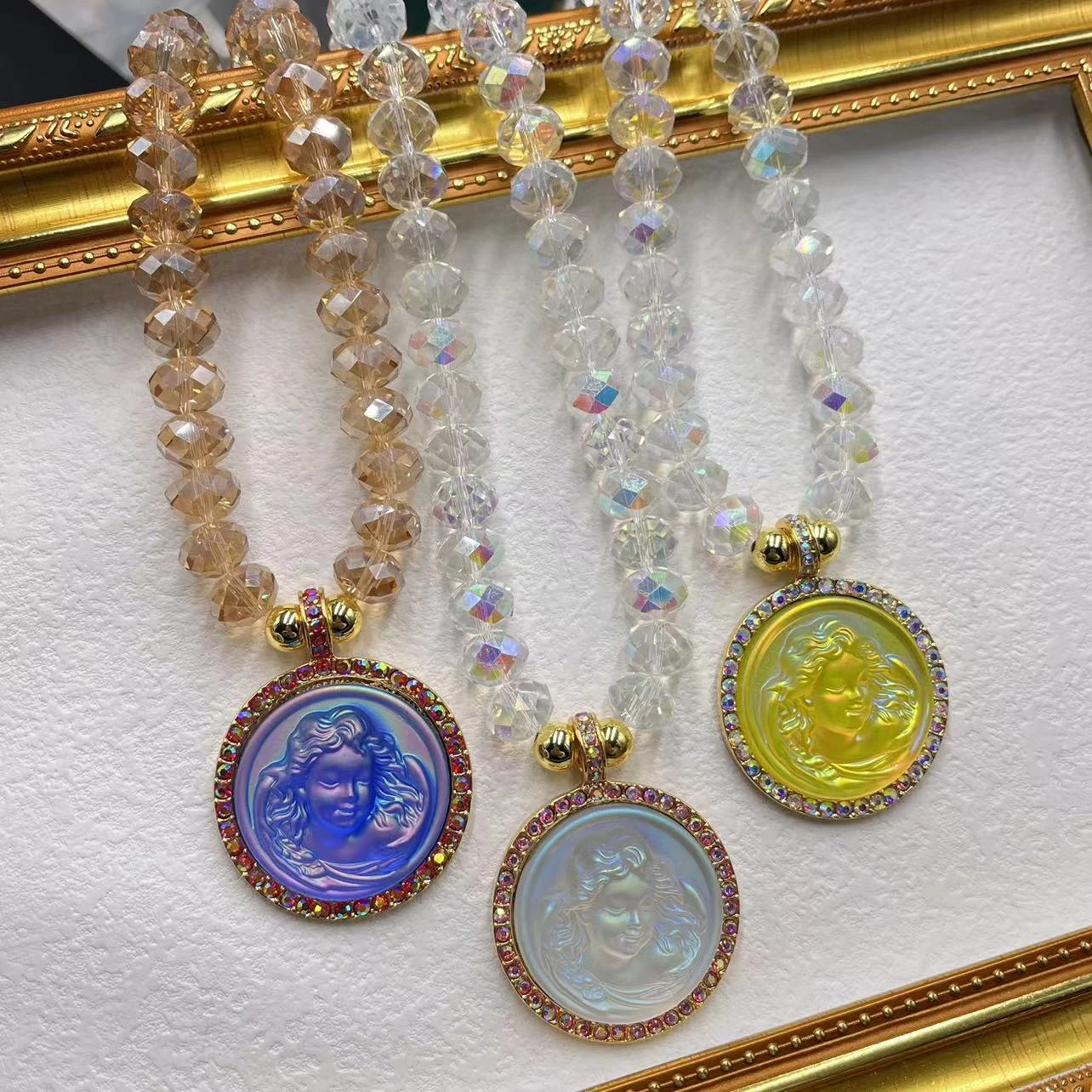 Vintage Style Portrait Round Alloy Glass Women’s Pendant Necklace