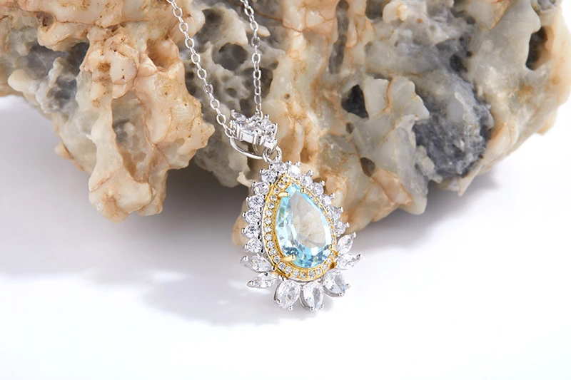 Vintage Style Water Droplets Sterling Silver Inlay Artificial Gemstones Pendant Necklace