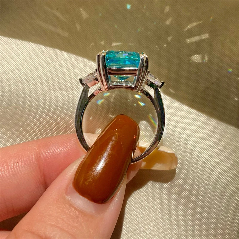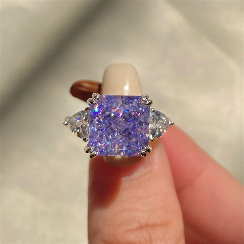 Wholesale Elegant Square Sterling Silver Inlay High Carbon Diamond Rings
