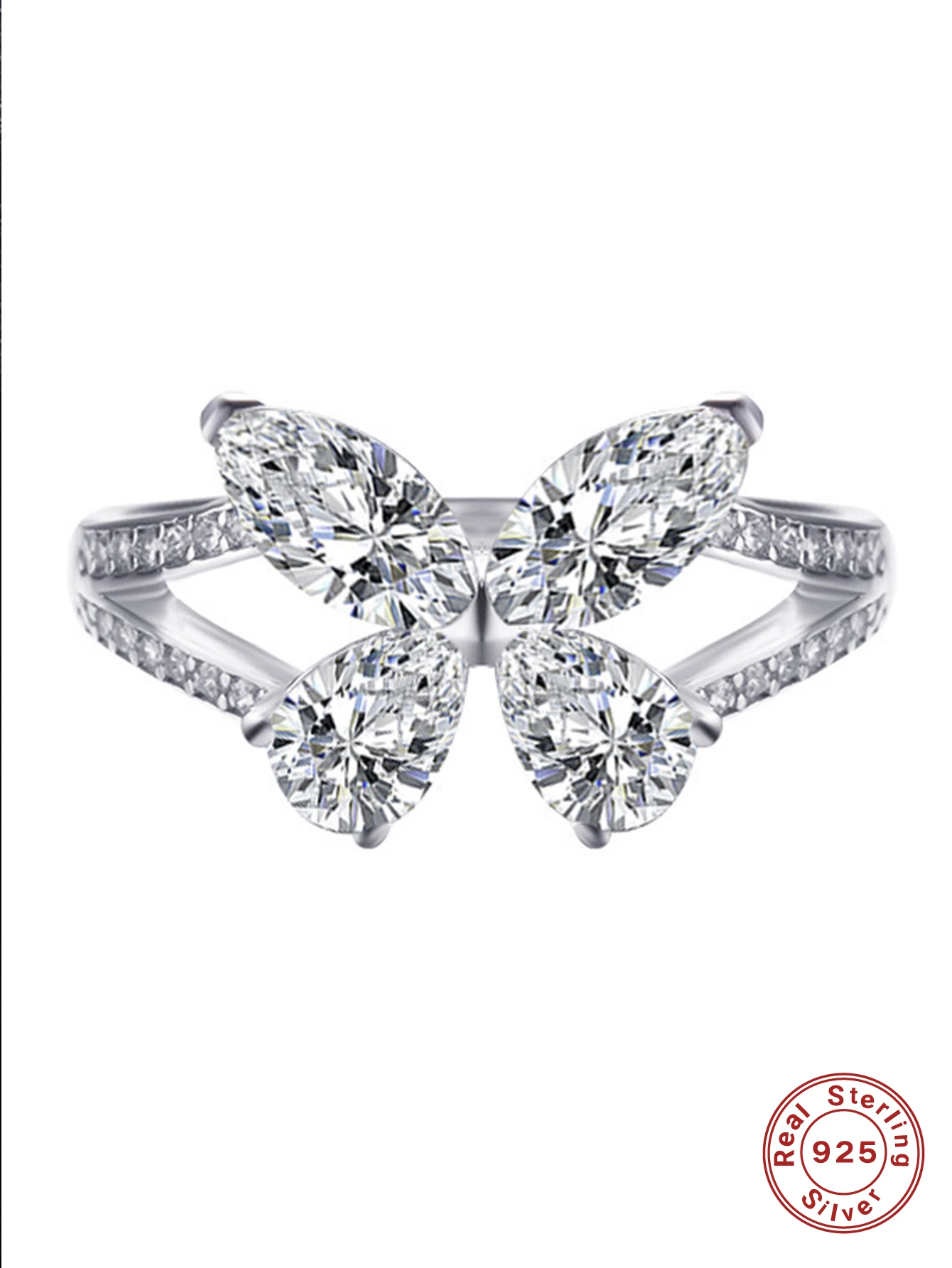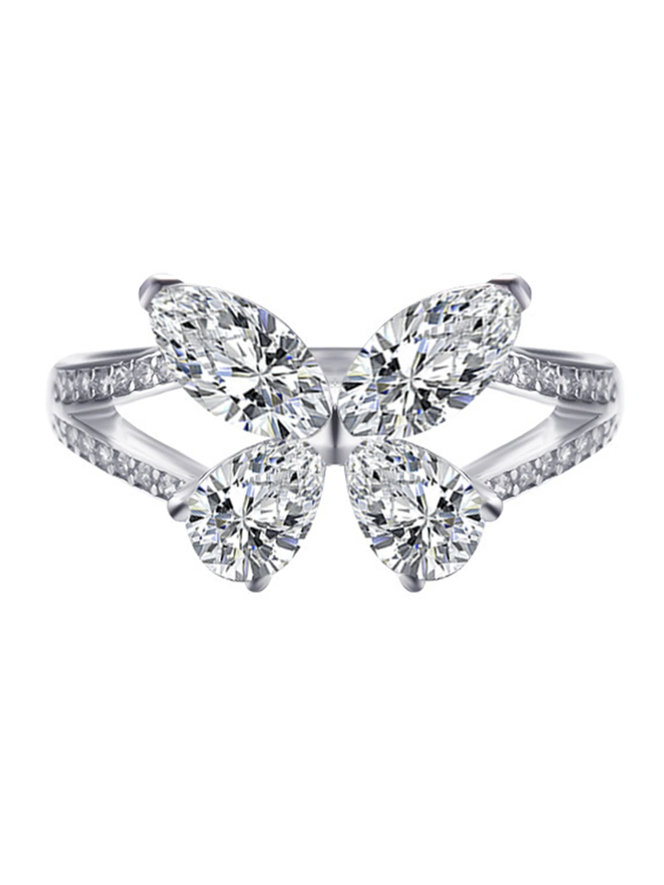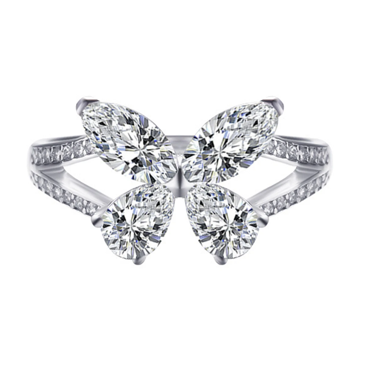 Wholesale Luxurious Wedding Shiny Butterfly Sterling Silver Inlay White Gold Plated High Carbon Diamond Rings