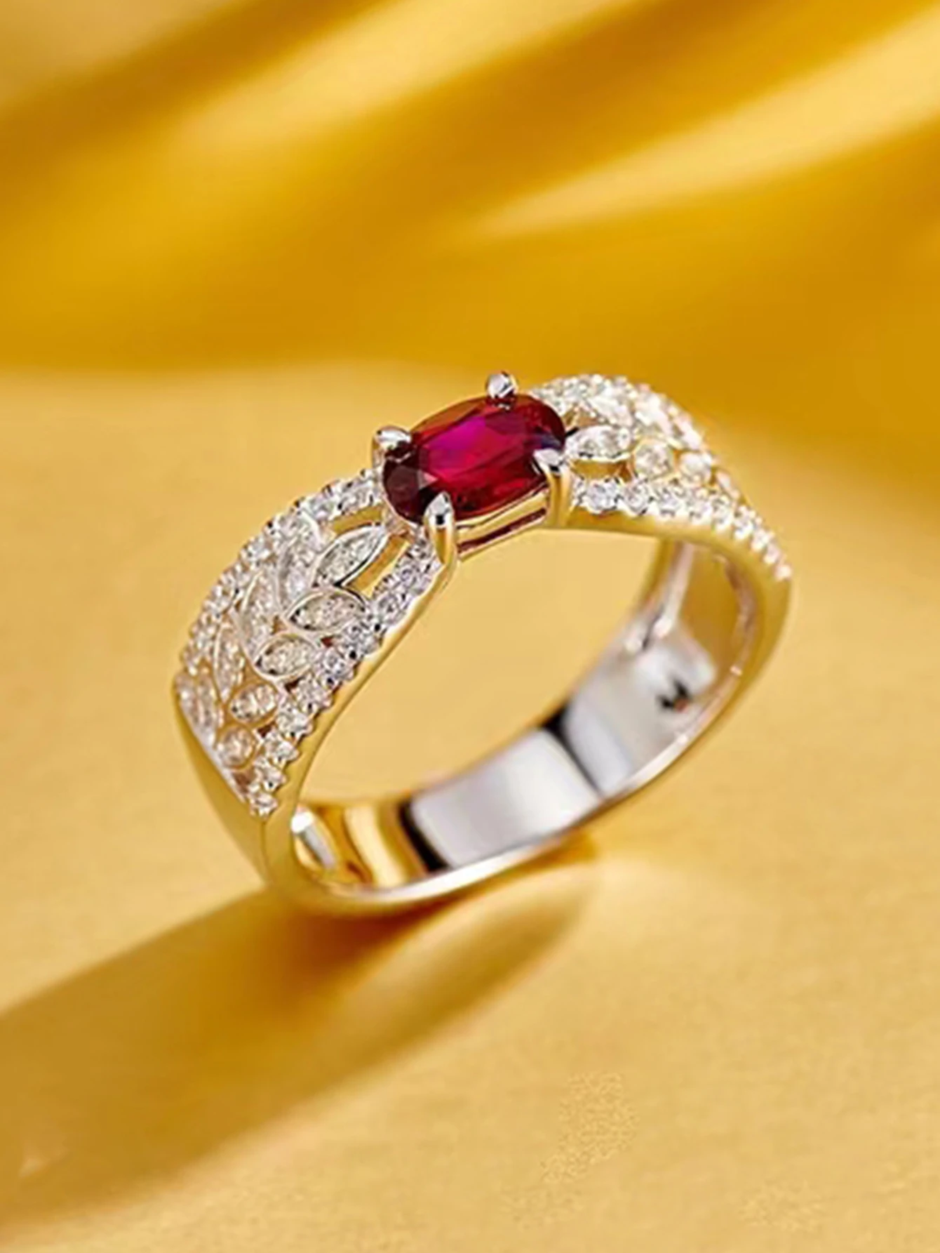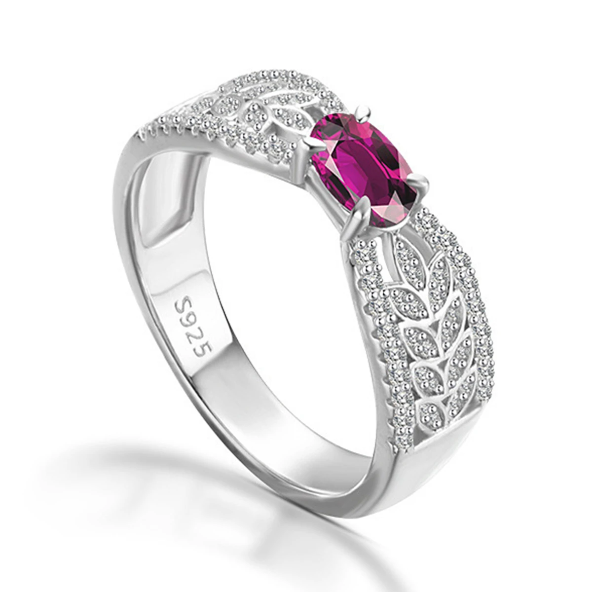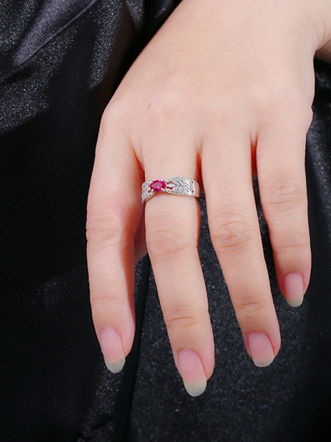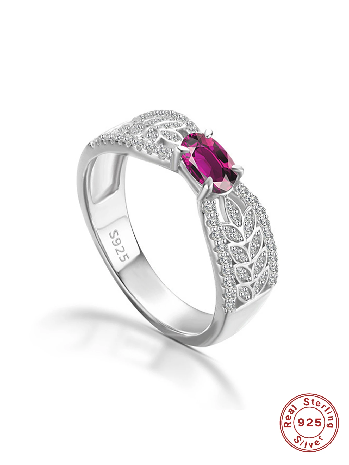 Wholesale Luxurious Wedding Shiny Leaf Sterling Silver Plating Inlay White Gold Plated High Carbon Diamond Rings