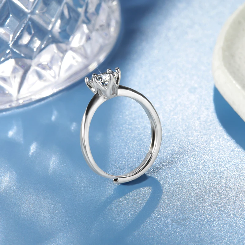 Wholesale Romantic Shiny Solid Color Sterling Silver GRA Inlay Moissanite Open Ring