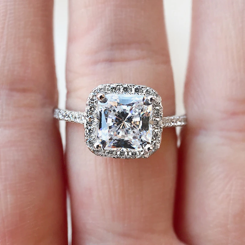 Wholesale Simple Style Square Sterling Silver Zircon Rings